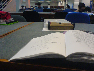 Thus.. I need to go to library to study, not that I can't study at home, but in library, it feels happeningly good atmosphere to study there whereas at home, I would prefer to be on my bed and be as lazy as possible just to avoid studying.